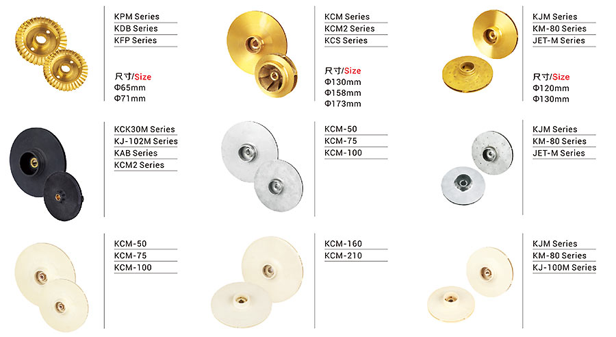 IMPELLERS: BRASS / STAINLESS STEEL / P.P.O. PLASTIC