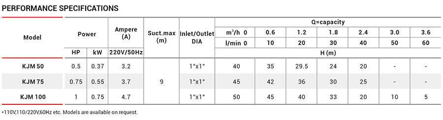• Self-priming pumps are high efficient jetting pump with excellent suction even when there are air bubbles. The pump consists a single impeller, centrifugal pump and a nozzle with a jet pipe. The series pumps are particularly suitable for water supplying in domestic installations, small-scale agriculture watering and where self-priming operation is demanded.